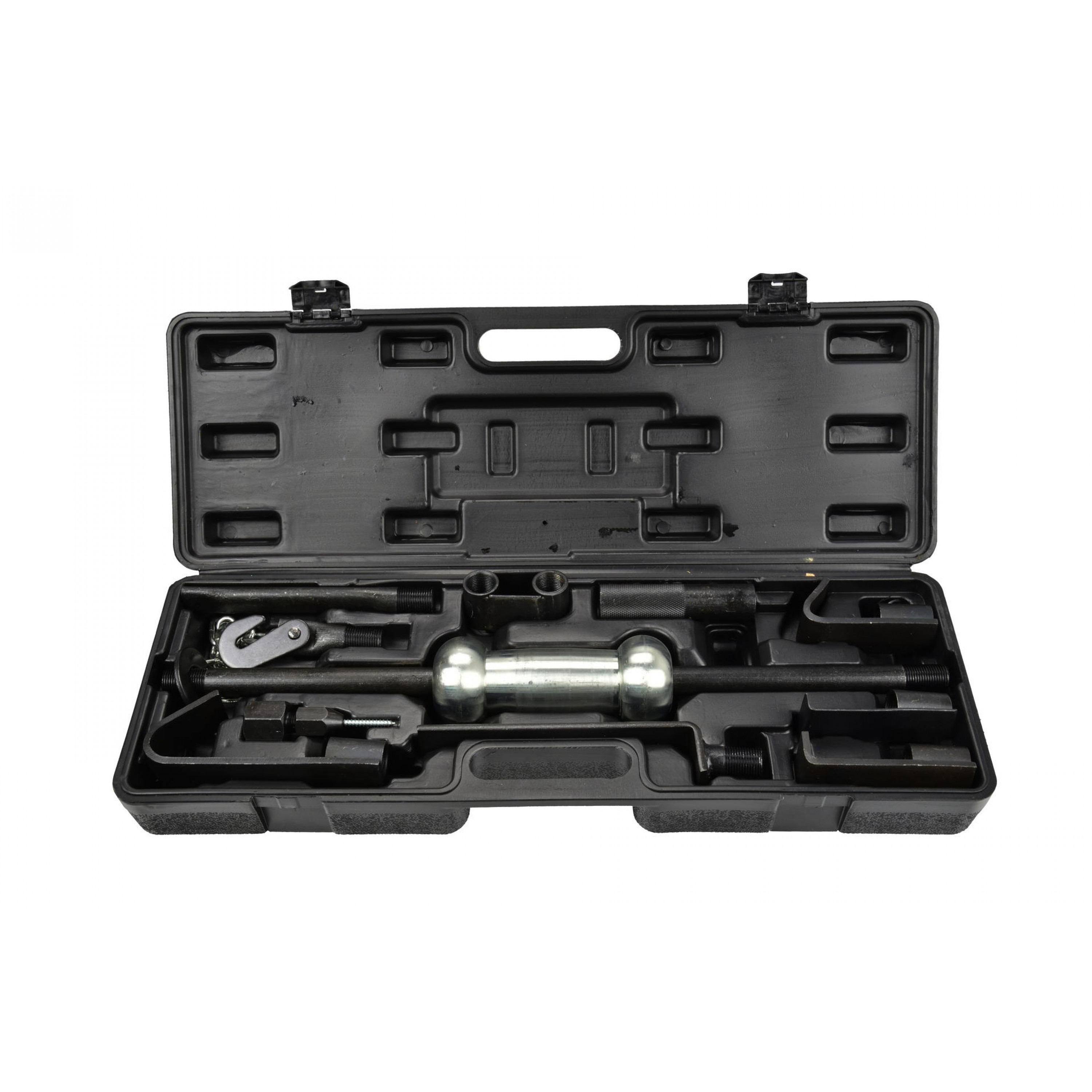 Setul include diverse tipuri de prindere, ciocane, cârlige pentru scoaterea și îndepărtarea loviturilor. Trusa perfectă pentru repararea caroseriei, utilă în orice atelier.